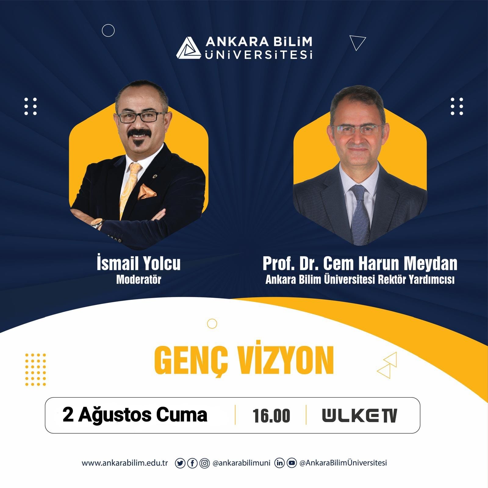 Ankara Bilim Üniversitesi Rektör Yardımcısı Prof.Dr.Cem Harun Meydan, 2024 YKS tercih süreci ve Ankara Bilim Üniversitesi'nin öne çıkan özelliklerinin ele alınacağı, moderatörlüğünü İsmail Yolcu'nun yaptığı Ülke Tv'de saat 15.00'de yayınlanacak olan Genç Vizyon programının canlı yayın konuğu olacak.