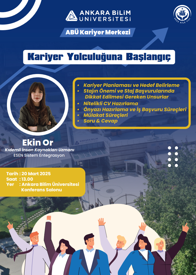 Bu kapsamda ilk adımımızı Kıdemli İnsan Kaynakları Uzmanı Ekin Or tarafından verilecek “Kariyer Yolculuğuna Başlangıç” başlıklı eğitimimizle başlatıyoruz.