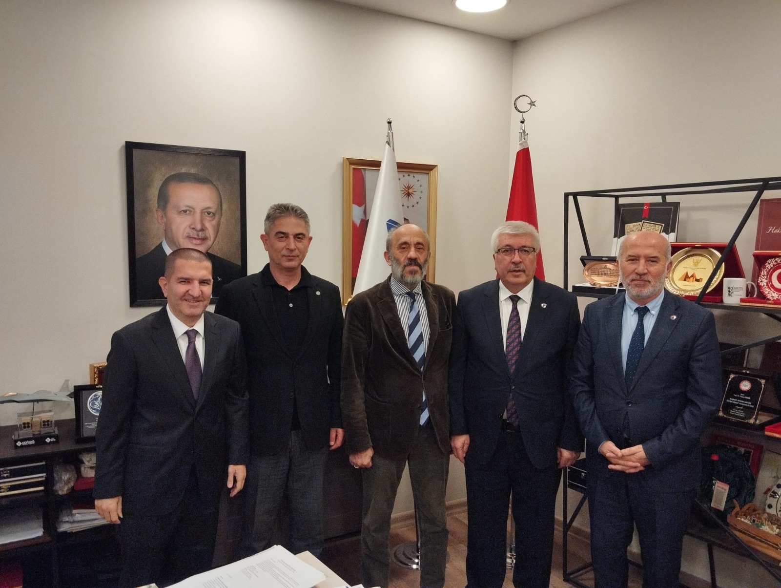 Sinop Üniversitesi Rektörü Prof. Dr. Şakir Taşdemir ile Genel Sekreteri Şenol Metin, Rektörümüz Prof. Dr. Yavuz Demir’e nezaket ziyaretinde bulundu. Görüşmeye, Genel Sekreterimiz Ali Demirdağ ve Mütevelli Heyeti Üyemiz Dr. R. Erdem Erkul'da eşlik etti.