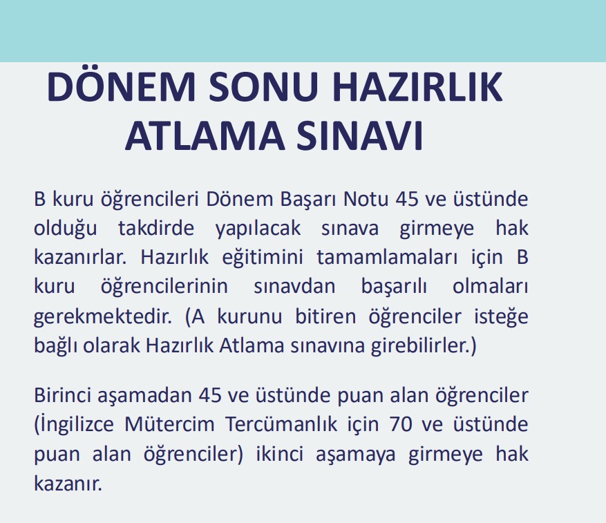 Hazırlık Atlama Sınavına aşağıdaki şartlara uyan bütün öğrenciler (A kuru, B kuru, Tercümanlık) katılabilir:
