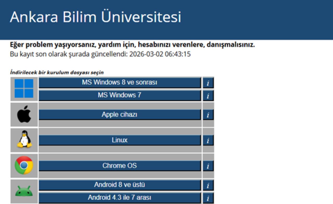 (لطفاً مطمئن شوید که برنامه اصلی توسعه یافته توسط SURF/GÉANT را به جای برنامههای ثانویه با لوگوهای مختلف انتخاب میکنید.) 2. هنگام باز کردن برنامه، دانشگاه علوم آنکارا را از لیست موسسات انتخاب کنید. ۳. وقتی روی «بعدی» کلیک میکنید، سیستم از شما اطلاعات احراز هویت را میپرسد: o نام کاربری: نام کاربری که توسط دانشگاه ما به شما داده شده است (مثلاً ad.soyad@ankarabilim.edu.tr یا s12345C78S@ankarabilim.edu.tr)